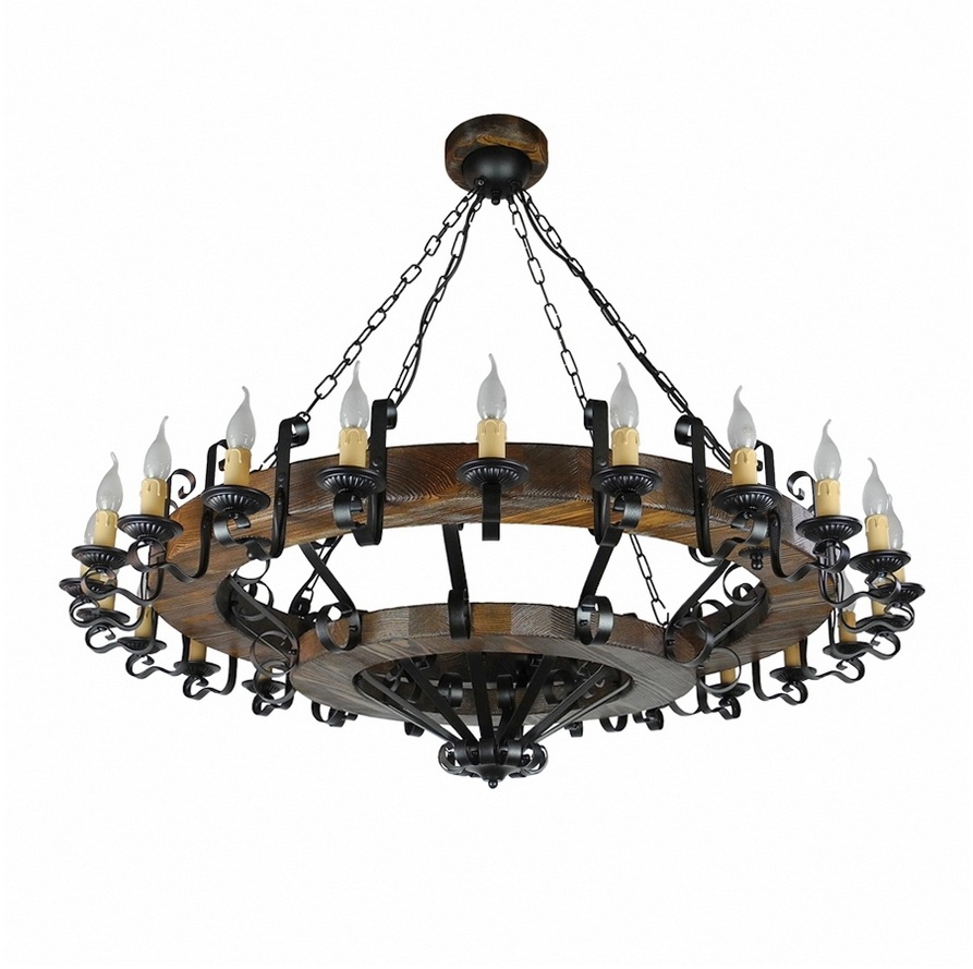 Эта подвесная люстра создана для больших помещений и «второго света»: массив дерева в сочетании с цепным подвесом и открытыми «свечами» формирует характерный замковый образ и тёплое камерное освещение. Такой светильник органично впишется в классический интерьер, кантри и стилизацию под средневековый зал, подчёркивая архитектуру пространства.