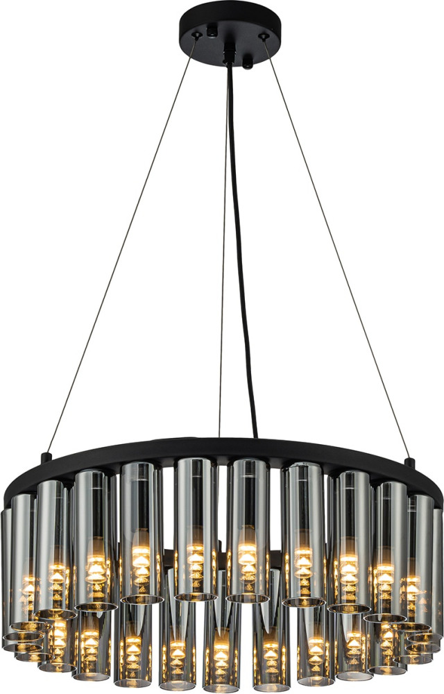 Корпус подвесной люстры выполнен из прочного металла, а чёрный цвет придаст вашему интерьеру элегантности. Плафон выполнен в дымчатом цвете, что добавляет модели легкости, благородства и завершенность образа.