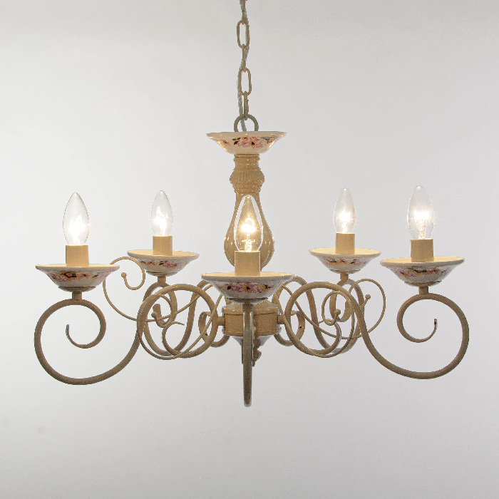 Для создания достаточного освещения в светильнике предусмотрены лампочки в количестве 5 шт. с цоколем E14 и общей мощностью 200 Вт., что обеспечивает достаточное освещение помещения площадью до 12 кв.м.
