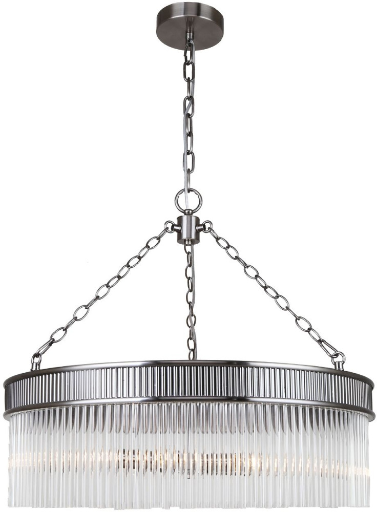 Каркас подвесной люстры исполнен из прочного металла, а никель/хромовый цвет добавит вашему интерьеру элегантности. Плафон выполнен в прозрачном цвете, что добавляет модели легкости, элегантности и завершенность образа.