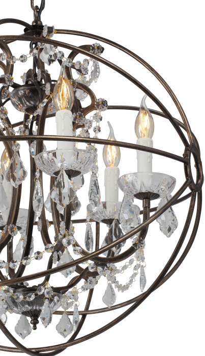 Для создания мягкого освещения в светильнике предусмотрены лампочки в количестве 6 шт. с цоколем E14 и общей мощностью 240 Вт., что обеспечивает достаточное освещение помещения площадью до 18 кв.м.