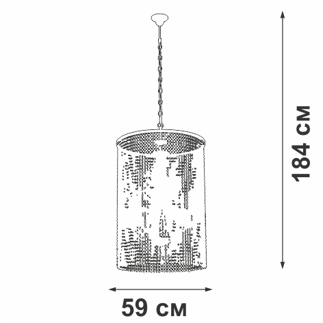 Размеры светильника: ширина 590 мм, высота 1840 мм. - такие размеры позволяют люстре идеально смотреться как в просторных, так и в небольших помещениях.