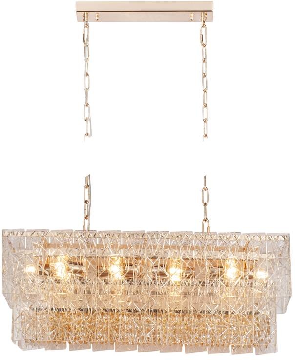 Каркас подвесной люстры реализован из высококачественного , а золотой цвет придаст вашему интерьеру глубины. Плафон выполнен в прозрачном цвете, что добавляет модели легкости, элегантности и завершенность образа.