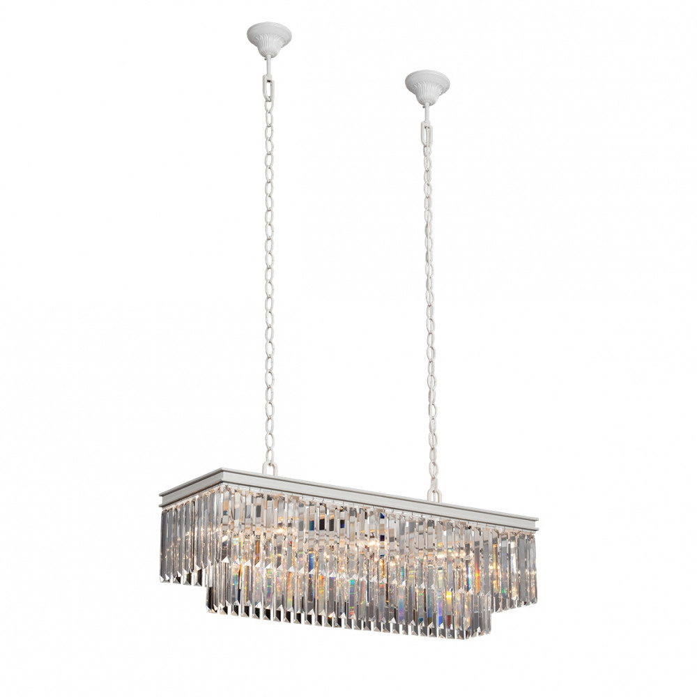 Корпус подвесной люстры выполнен из высококачественного металла, а белый цвет придаст вашему интерьеру элегантности. Плафон выполнен в прозрачном цвете, что добавляет модели легкости, благородства и завершенность образа.