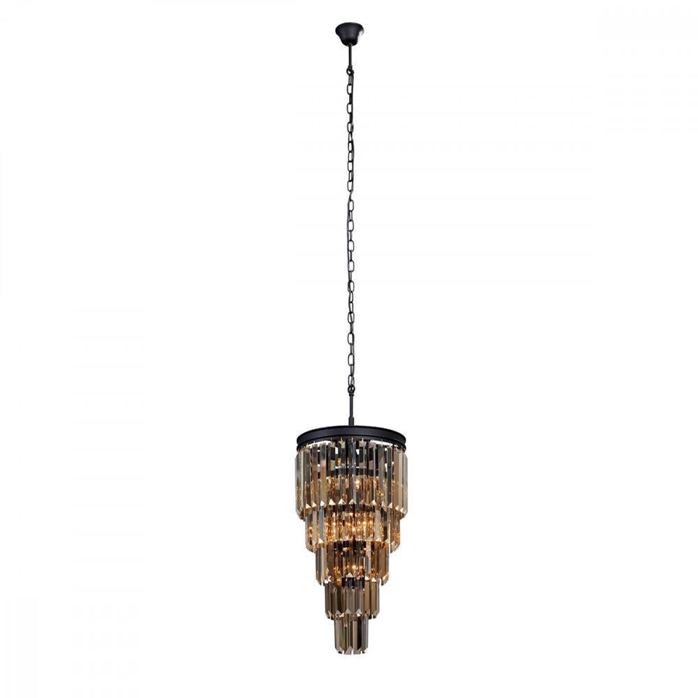 Каркас подвесной люстры создан из прочного металла, а чёрный цвет добавит вашему интерьеру изысканности. Плафон выполнен в янтарном цвете, что добавляет модели легкости, благородства и завершенность образа.