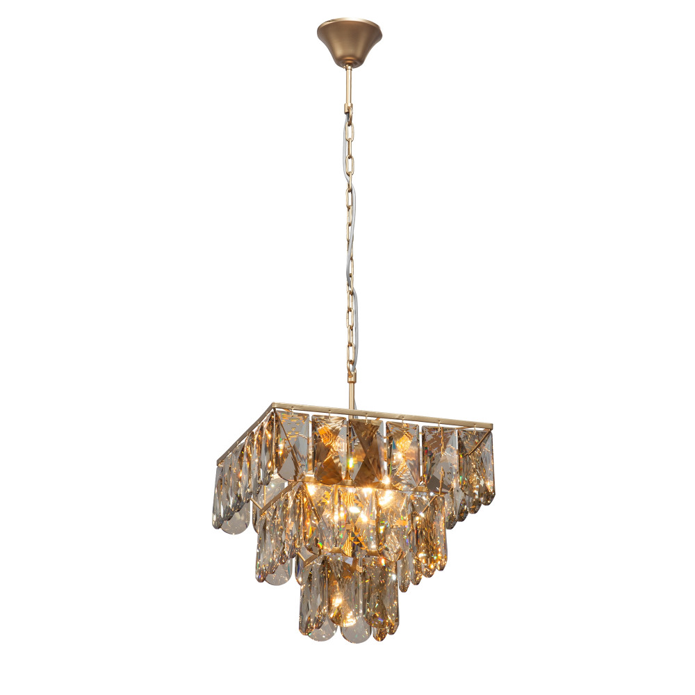 Каркас подвесной люстры создан из высококачественного металла, а золотой цвет придаст вашему интерьеру глубины. Плафон выполнен в янтарном цвете, что добавляет модели легкости, изысканности и завершенность образа.