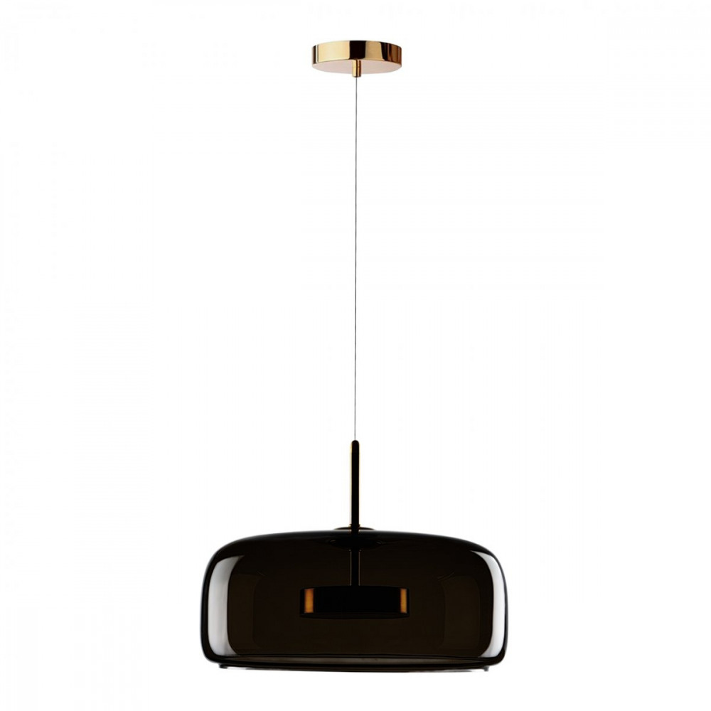 Каркас подвесной люстры сделан из надежного металла, а золотой цвет придаст вашему интерьеру изысканности. Плафон выполнен в коричневом цвете, что добавляет модели легкости, благородства и завершенность образа.