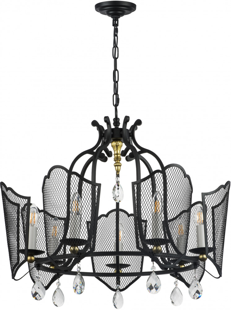 Корпус потолочной люстры сделан из прочного металла, что добавляет ей прочности и долговечности. Плафон в чёрном цвете придаёт модели лёгкости, изысканности и завершенности, благодаря чему люстра станет настоящим украшением вашего интерьера.