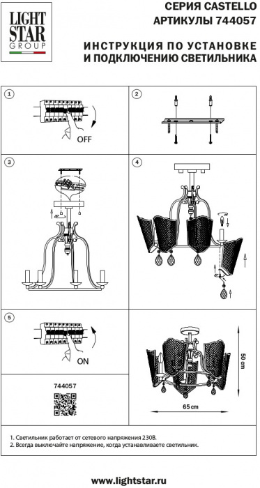 Таким образом, потолочная люстра 744057 – это классный продукт от известного производителя Lightstar (Италия), она сочетает вдохновляющий дизайн и неповторимое мастерство.