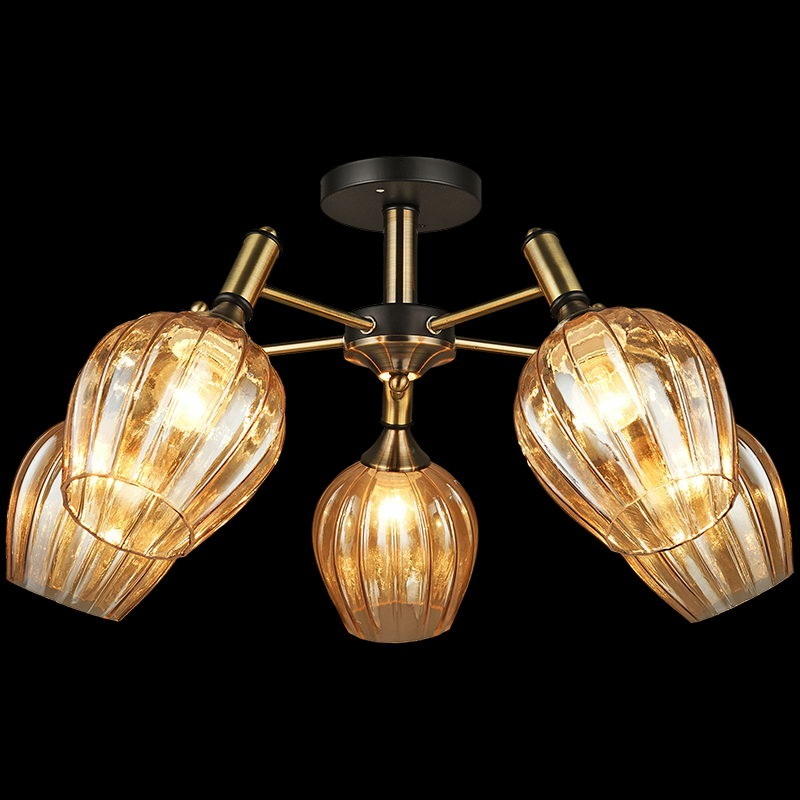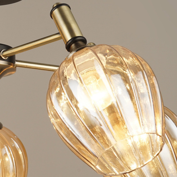 Каркас потолочной люстры создан из надежного металла, что добавляет ей прочности и долговечности. Плафон в янтарном цвете придаёт модели лёгкости, элегантности и завершенности, благодаря чему люстра станет настоящим украшением вашего интерьера.