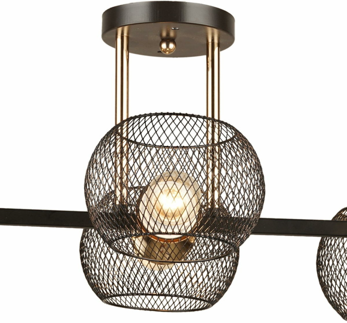 Корпус потолочной люстры реализован из надежного металла, что добавляет ей прочности и долговечности. Плафон в чёрном цвете придаёт модели лёгкости, элегантности и завершенности, благодаря чему люстра станет настоящим украшением вашего интерьера.
