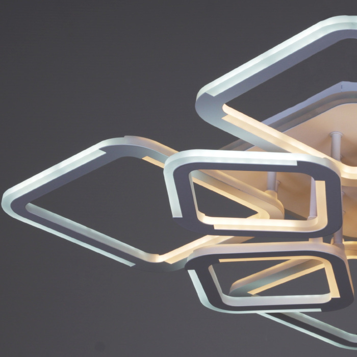 Каркас потолочной люстры сделан из высококачественного металла, акрила, что добавляет ей прочности и долговечности. Плафон в белом цвете придаёт модели лёгкости, элегантности и завершенности, благодаря чему люстра станет настоящим украшением вашего интерьера.