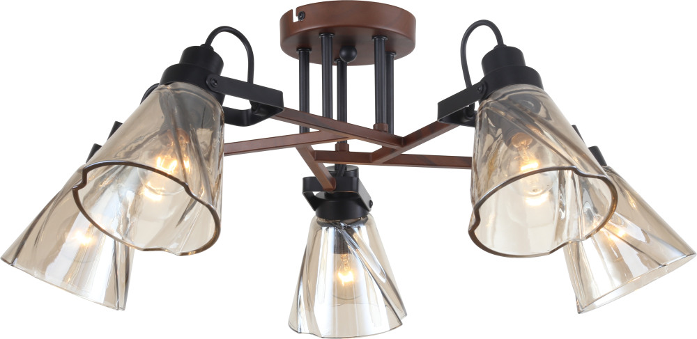 Для создания мягкого освещения в светильнике предусмотрены лампочки в количестве 5 шт. с цоколем E14 и общей мощностью 200 Вт., благодаря чему обеспечивается достаточное освещение для помещений площадью до 15 кв.м.