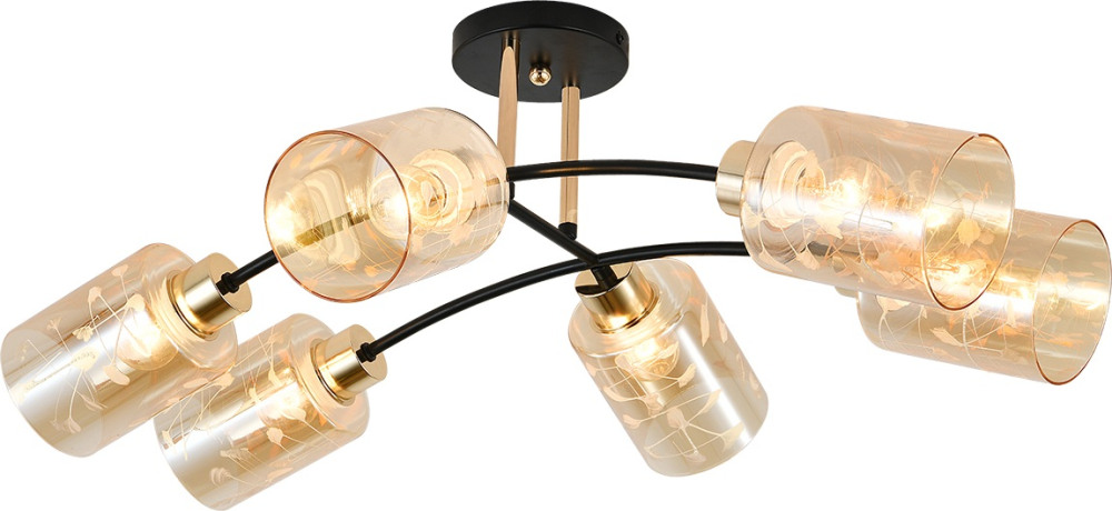 Каркас потолочной люстры выполнен из высококачественного металла, что добавляет ей прочности и долговечности. Плафон в янтарном цвете придаёт модели лёгкости, изысканности и завершенности, благодаря чему люстра станет настоящим украшением вашего интерьера.