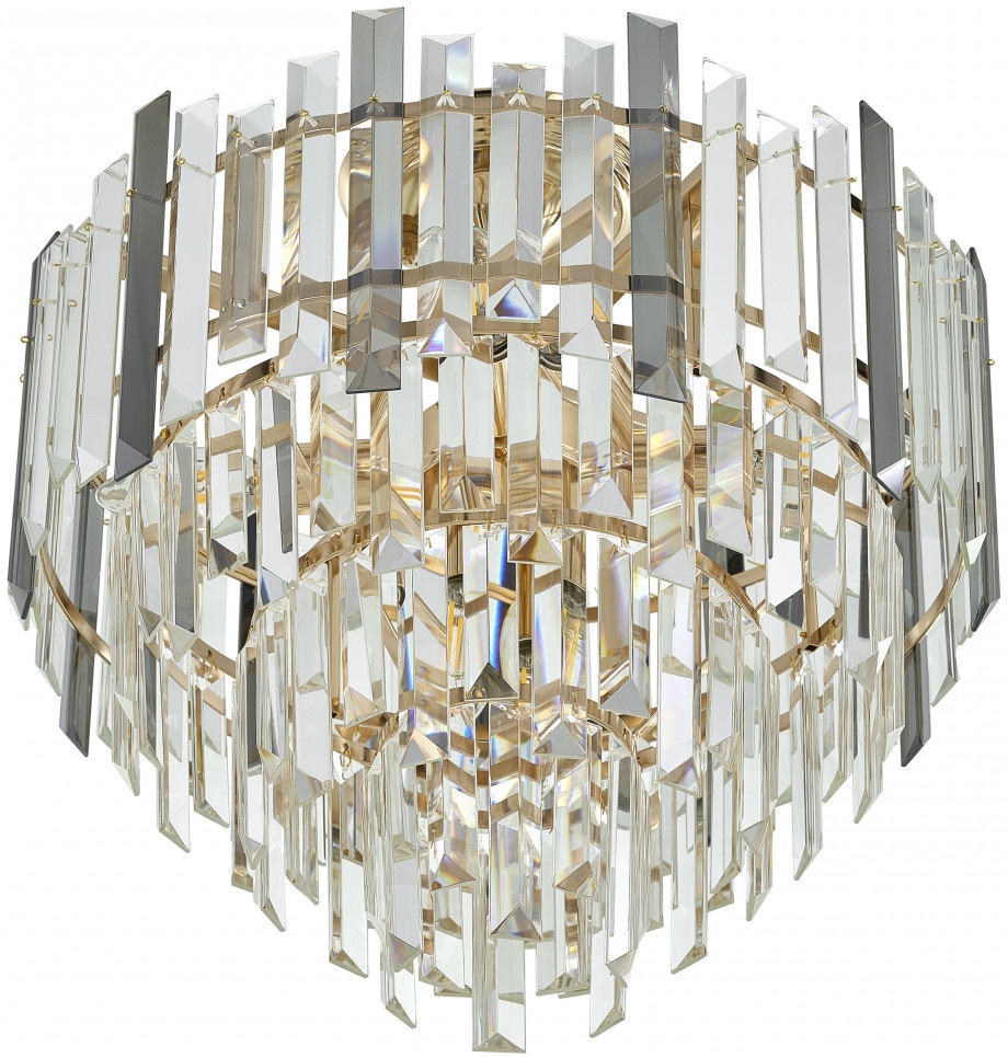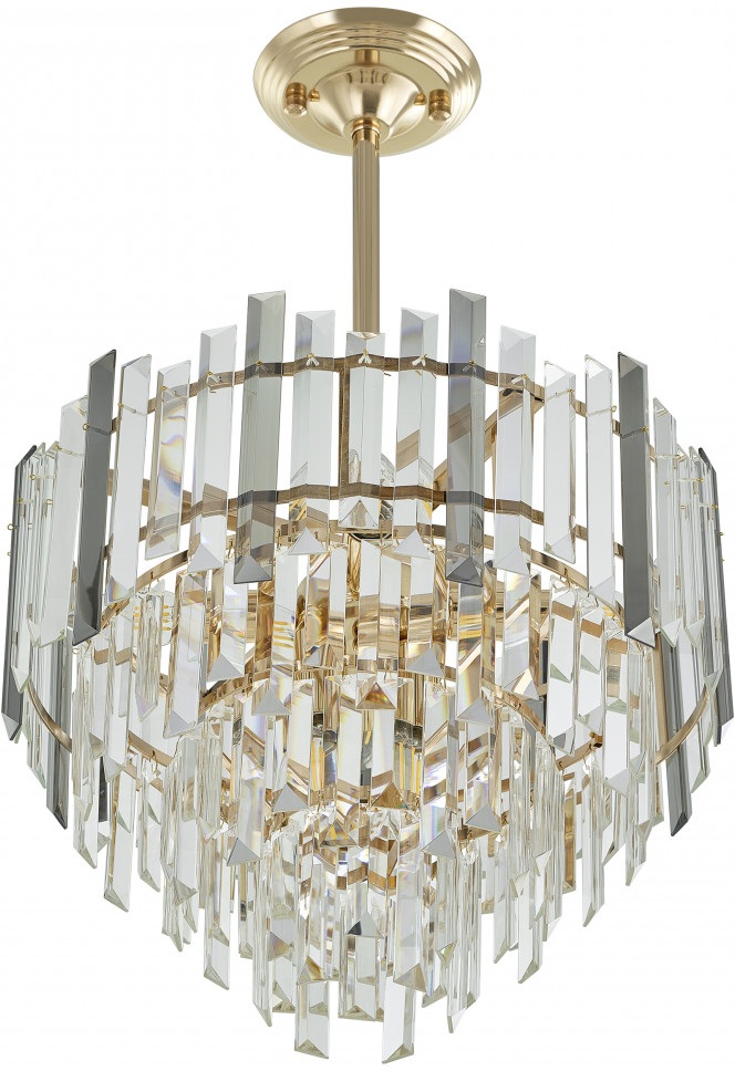 Каркас потолочной люстры изготовлен из прочного металла, что добавляет ей прочности и долговечности. Плафон в прозрачном, дымчатом цвете придаёт модели лёгкости, элегантности и завершенности, благодаря чему люстра станет настоящим украшением вашего интерьера.