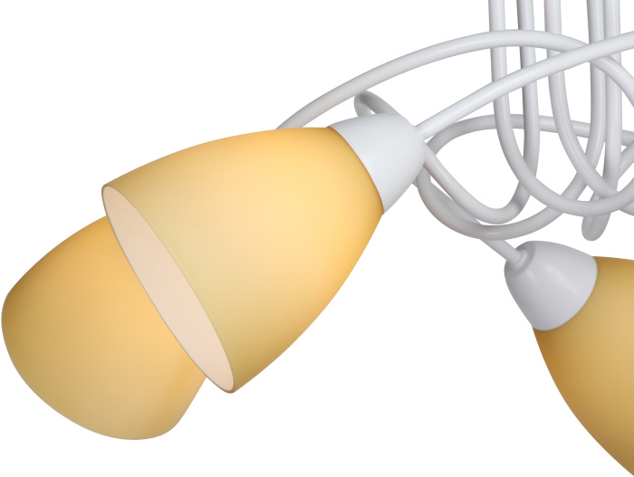 Корпус потолочной люстры создан из высококачественного металла, что добавляет ей прочности и долговечности. Плафон в жёлтом цвете придаёт модели лёгкости, изысканности и завершенности, благодаря чему люстра станет настоящим украшением вашего интерьера.