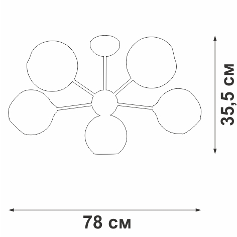 Размеры светильника: ширина 780 мм, высота 355 мм. Такие размеры позволяют люстре прекрасно вписываться как в просторные, так и в небольшие помещения.