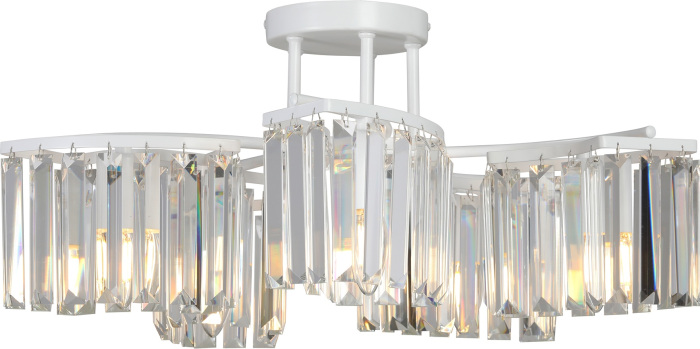 Каркас потолочной люстры реализован из высококачественного металла, что добавляет ей прочности и долговечности. Плафон в прозрачном цвете придаёт модели лёгкости, изысканности и завершенности, благодаря чему люстра станет настоящим украшением вашего интерьера.