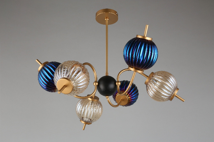 Каркас потолочной люстры выполнен из надежного металла, что добавляет ей прочности и долговечности. Плафон в синем цвете придаёт модели лёгкости, изысканности и завершенности, благодаря чему люстра станет настоящим украшением вашего интерьера.