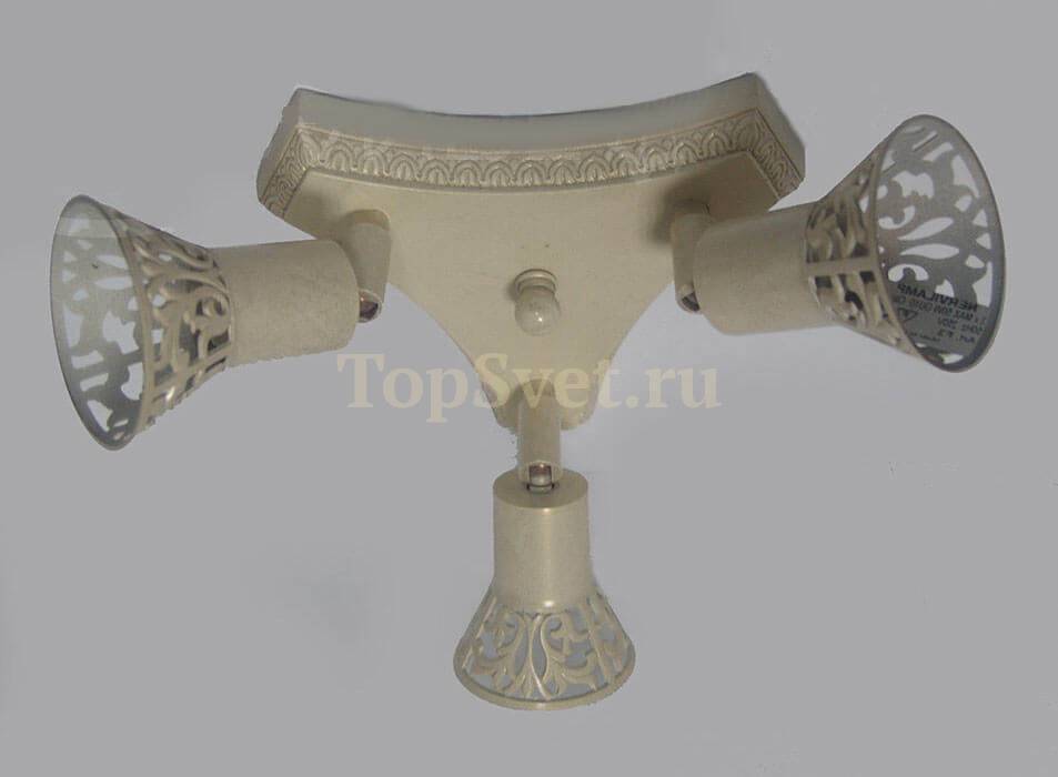 Для создания достаточного освещения в светильнике предусмотрены лампочки в количестве 3 шт. с цоколем GU10 и общей мощностью 150 Вт., благодаря чему обеспечивается хорошее освещение для помещений площадью до 10 кв.м.