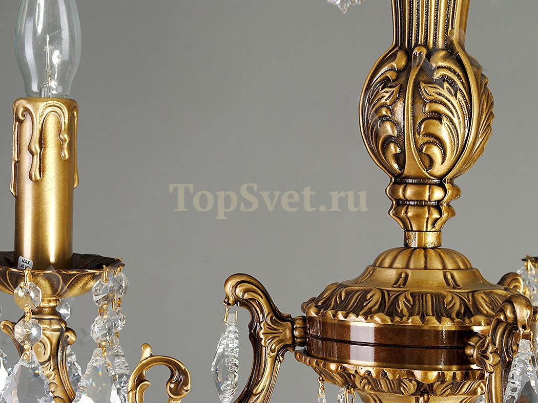 Корпус хрустальной люстры создан из премиального металла, бронзовый цвет добавляет в ваш интерьер изысканность. Плафон в цвете дополняет общую композицию, добавляя модели воздушность и элегантность.