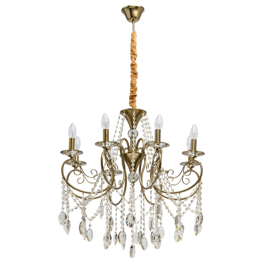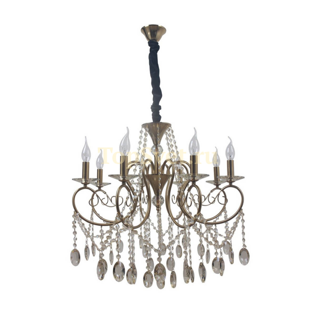 Каркас хрустальной люстры выполнен из высококачественного металла, бронзовый цвет придает в ваш интерьер изысканность. Плафон в цвете завершает общую композицию, добавляя модели воздушность и шарм.