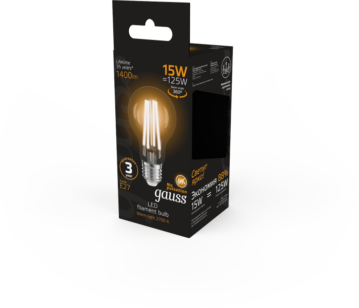 Лампочка светодиодная филаментная 102902115 Gauss 15Вт 2700K