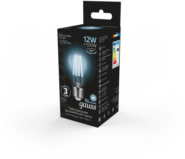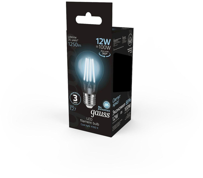 Лампочка светодиодная филаментная Filament 102902212 Gauss 12Вт 4100K
