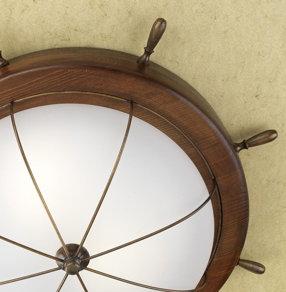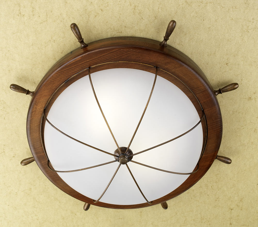 Размеры этого светильника – ширина 350 мм., высота 130 мм. Он идеально впишется для комнаты площадью до 5 кв.метров. Для создания необходимого освещения здесь использовано 1 ламп с цоколем Морская тема и общей мощностью 10 Вт.