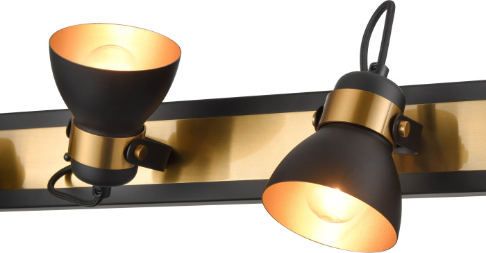 Корпус данной модели создан из прочного металла, а его золотой цвет придаст вашему интерьеру гармоничности и теплоты. Плафон выполнен в чёрном цвете, что придает модели легкости и элегантности.