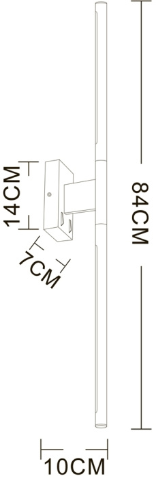 Размеры этого светильника – ширина мм., высота 840 мм. Он идеально подойдёт для комнаты площадью до 2 квадратных метров. Для создания приятного освещения здесь использовано 1 ламп с цоколем LED и общей мощностью 10 Вт.