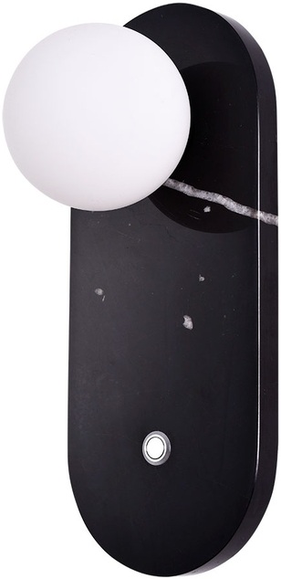 Корпус данной модели реализован из качественного металла, камня, а его чёрный цвет придаст вашему интерьеру изысканности и теплоты. Плафон выполнен в белом цвете, что придает модели легкости и элегантности.