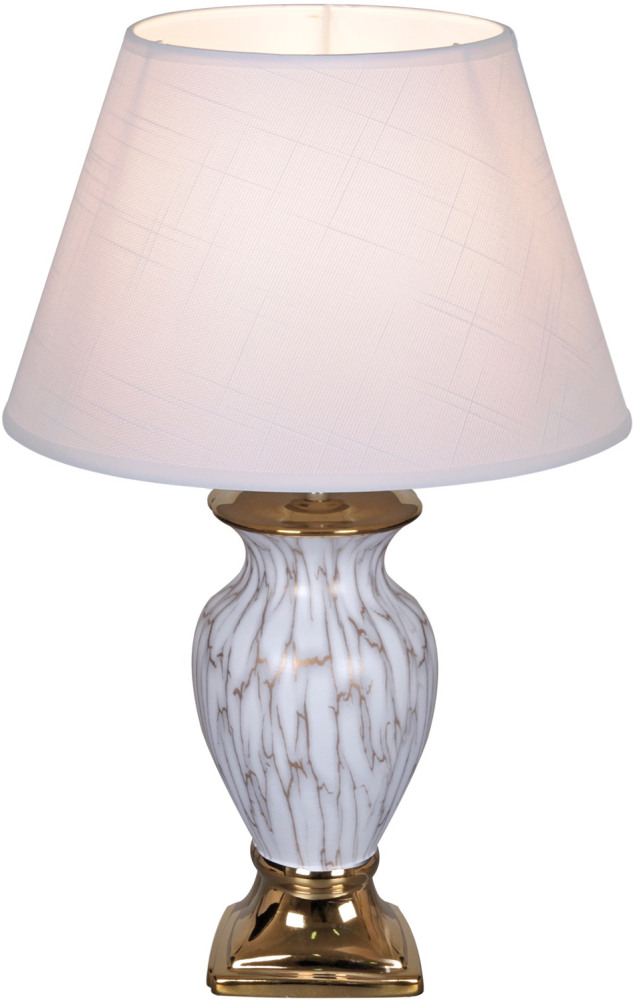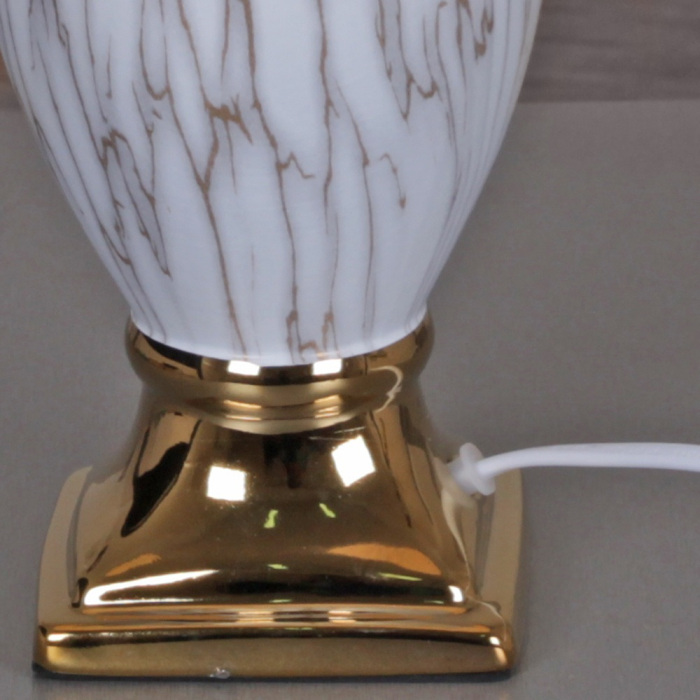 Корпус данной модели исполнен из качественного керамика, а его золотой, белый цвет придаст вашему интерьеру изысканности и теплоты. Плафон выполнен в белом цвете, что придает модели легкости и элегантности.