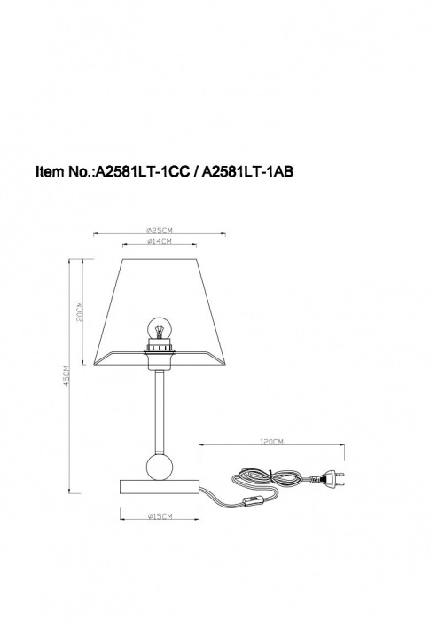 Заказывая лампу для стола A2581LT-1CC, вы можете быть уверены в его солидности и фирменном исполнении.