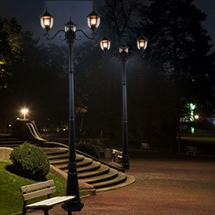 В этой модели уличного фонаря установлены лампы в количестве 3 шт. с цоколем E27, общей мощностью 180 Вт.