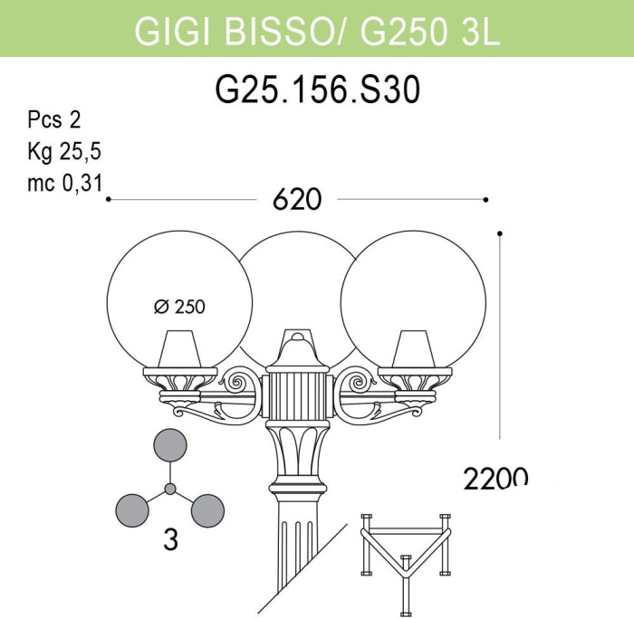Наземный фонарь GLOBE 250 G25.156.S30.AXF1R Fumagalli и другие товары на нашем сайте можно купить в рассрочку на 6 или 9 месяцев без переплаты, а также оформить кредит от Сбербанка на 36 месяцев!