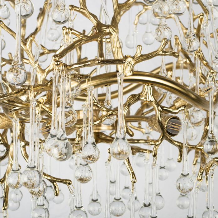 Размеры этого светильника – ширина 600 мм., высота 620 мм. Он идеально подойдёт для комнаты площадью до кв.метров. Для создания необходимого освещения здесь использовано 8 ламп с цоколем G9 и общей мощностью 40 Вт.