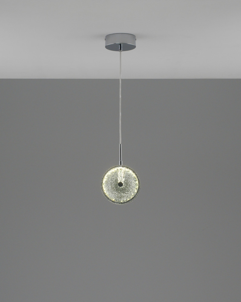 Каркас данной модели исполнен из надёжного металла, а его никель/хромовый цвет придаст вашему интерьеру изысканности и теплоты. Плафон выполнен в прозрачном, голубе цвете, что придает модели легкости и изысканности.