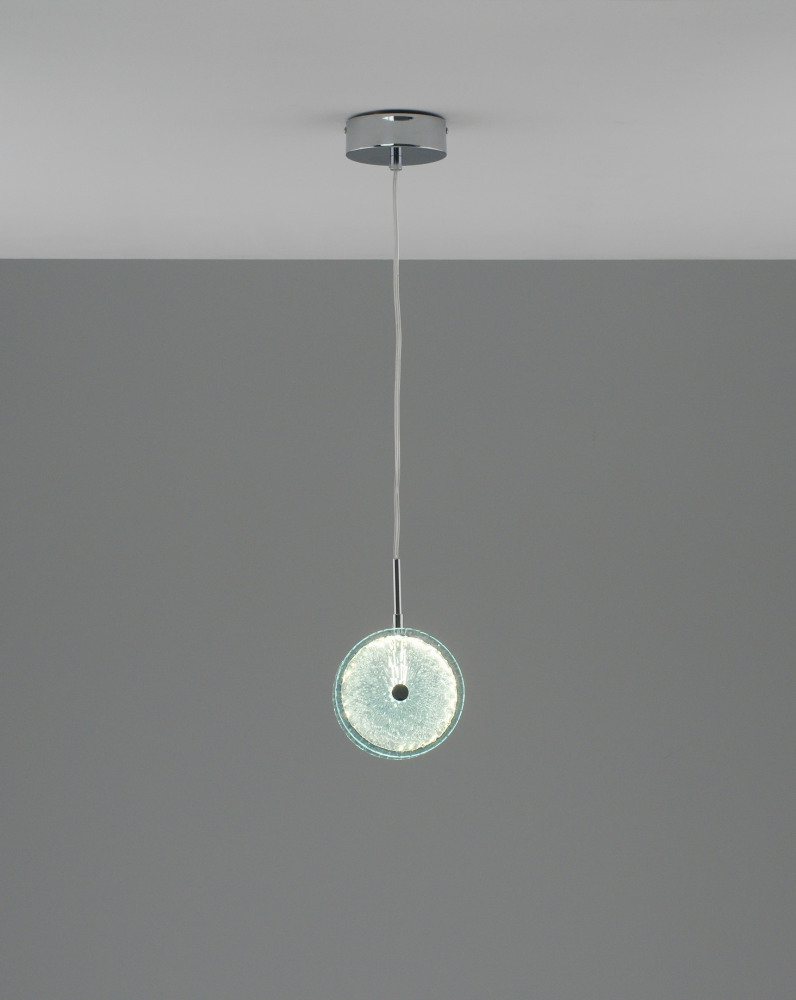 Каркас данной модели исполнен из надёжного металла, а его никель/хромовый цвет придаст вашему интерьеру изысканности и теплоты. Плафон выполнен в прозрачном, голубе цвете, что придает модели легкости и изысканности.