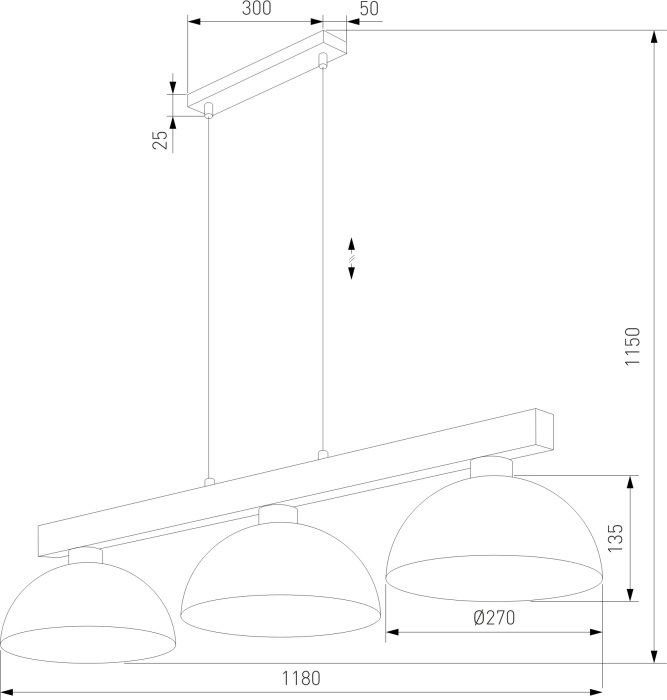 Размеры этого светильника – ширина 270 мм., высота 1150 мм. Он идеально подойдёт для комнаты площадью до 6 кв.метров. Для создания приятного освещения здесь использовано 3 ламп с цоколем E27 и общей мощностью 45 Вт.