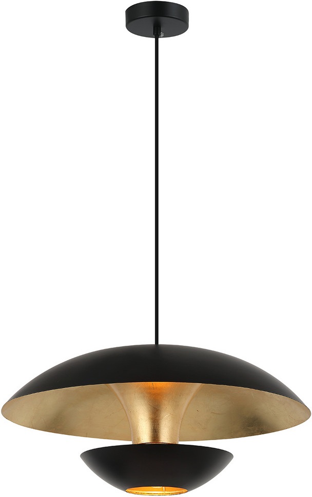 Корпус данной модели реализован из качественного металла, а его чёрный цвет придаст вашему интерьеру гармоничности и теплоты. Плафон выполнен в чёрном, золотом цвете, что придает модели легкости и элегантности.
