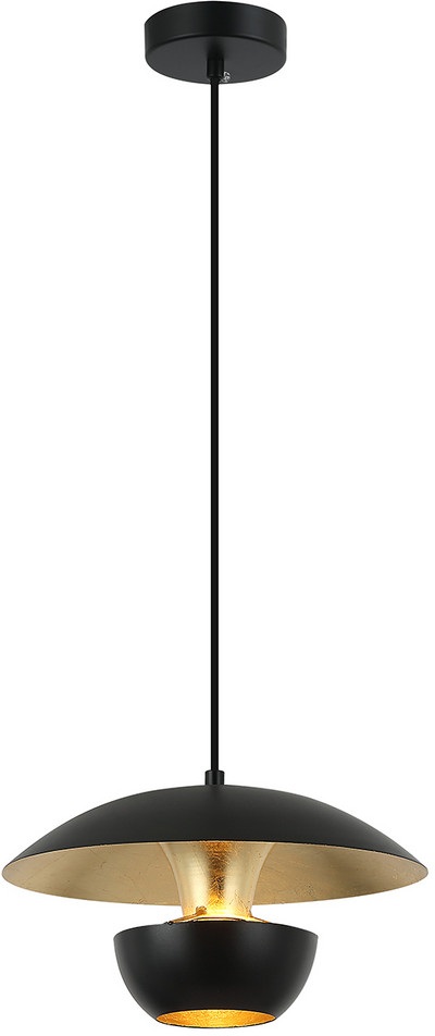 Корпус данной модели реализован из качественного металла, а его чёрный цвет придаст вашему интерьеру гармоничности и теплоты. Плафон выполнен в чёрном, золотом цвете, что придает модели легкости и элегантности.