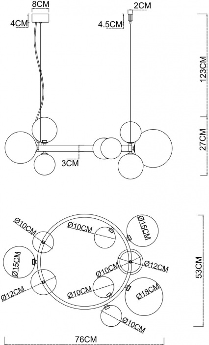 Размеры этого светильника – ширина мм., высота 270 мм. Он идеально впишется для комнаты площадью до 15 кв.метров. Для создания приятного освещения здесь использовано 10 ламп с цоколем G9 и общей мощностью 400 Вт.