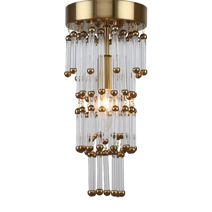 Каркас данной модели выполнен из качественного металла, а его латунь цвет придаст вашему интерьеру изысканности и теплоты. Плафон выполнен в прозрачном цвете, что придает модели легкости и изысканности.