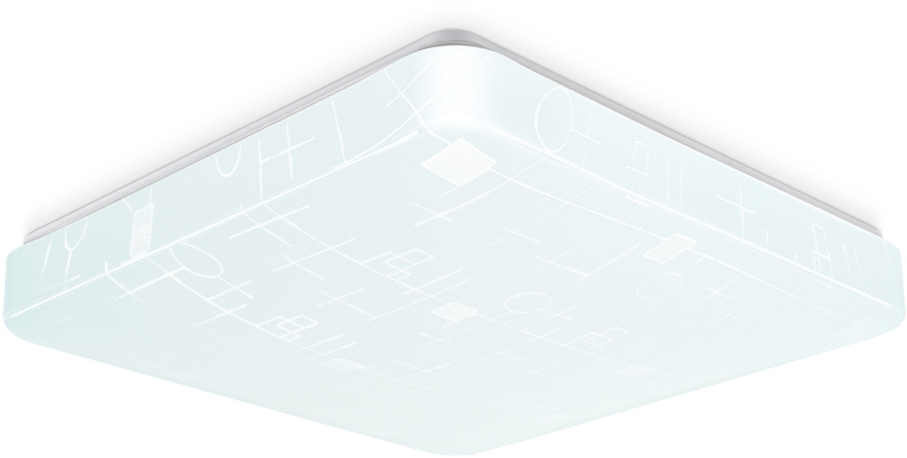 Размеры этого светильника – ширина 400 мм., высота 50 мм. Он идеально подойдёт для комнаты площадью до 12 квадратных метров. Для создания необходимого освещения здесь использовано ламп с цоколем LED и общей мощностью 36 Вт.