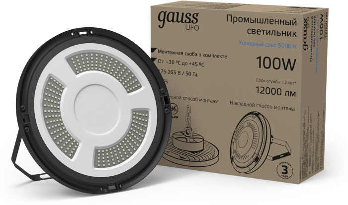 Промышленный купольный светильник Ufo 821536300 Gauss, а также весь ассортимент товаров, представленный на сайте интернет-магазина ТопСвет.ру обладает фирменной гарантией производителя.