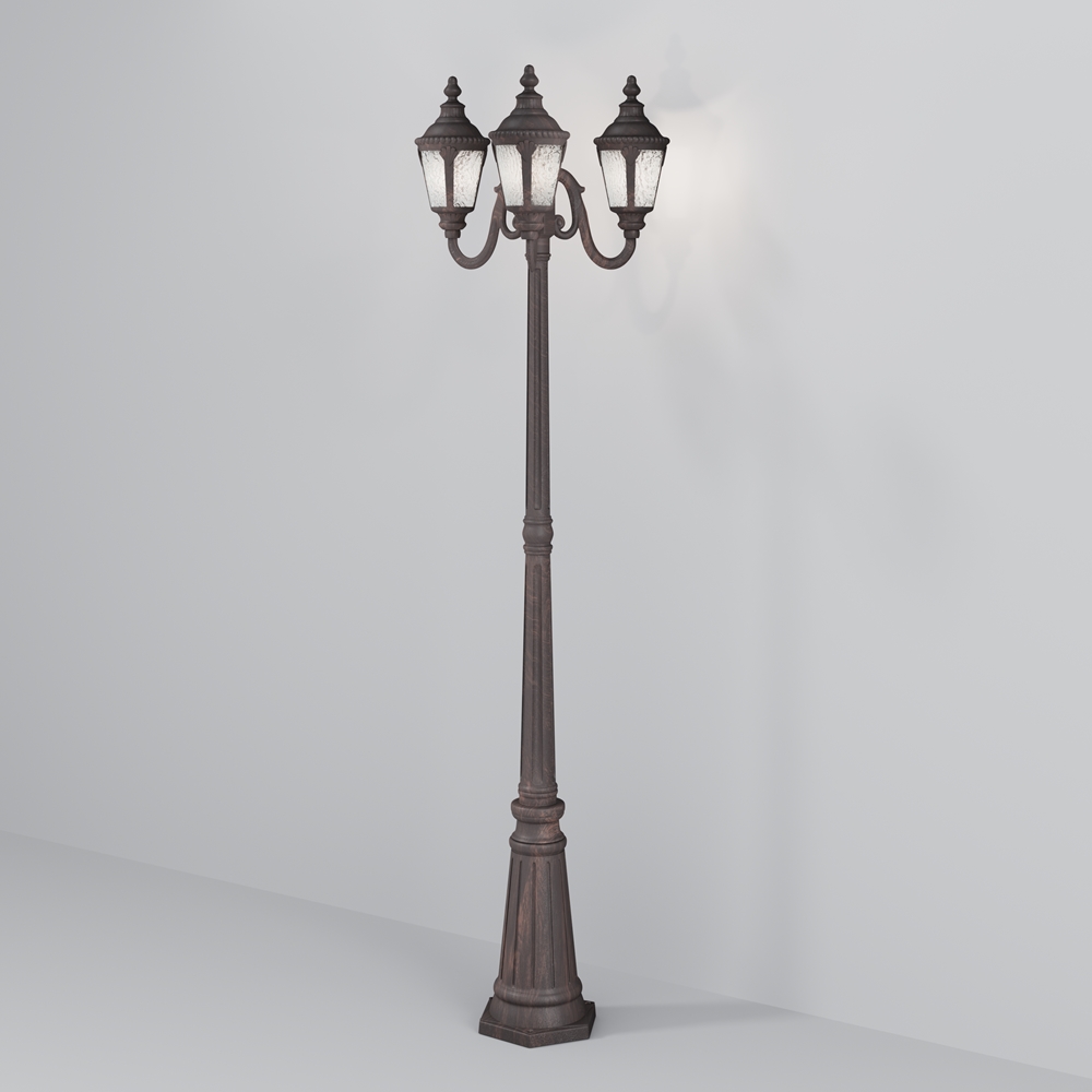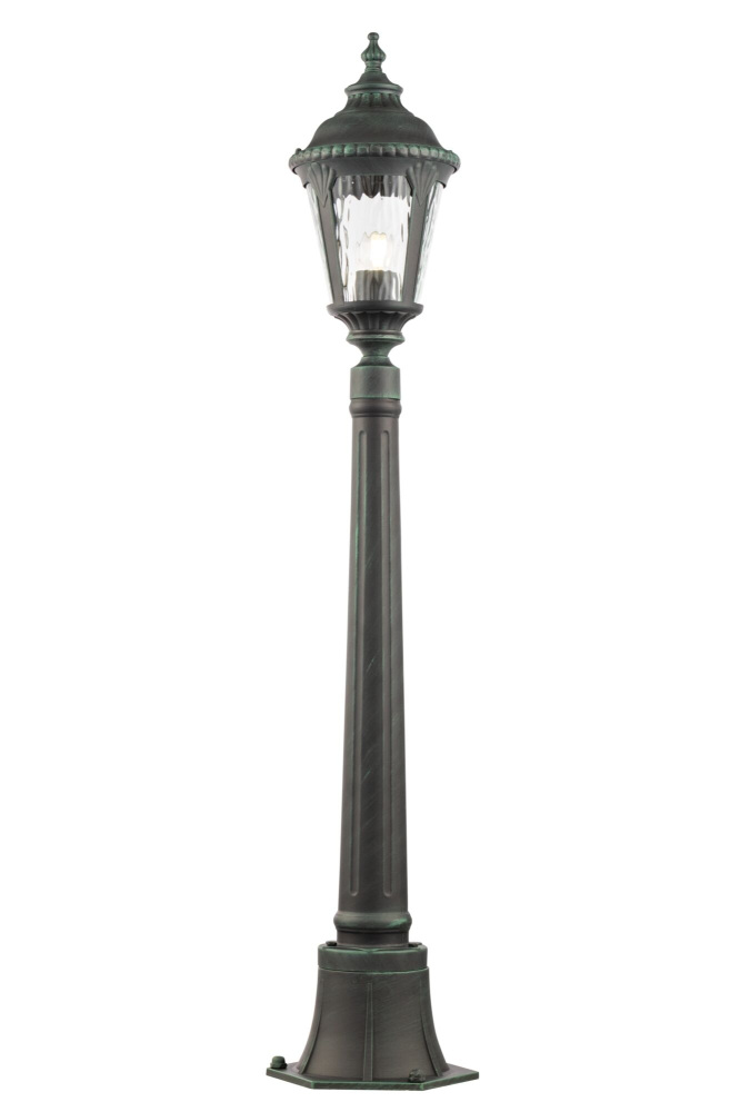 Элегантный ландшафтный светильник с художественным литьём подчёркивает архитектуру участка и дорожек. Прозрачное рельефное стекло даёт мягкое, равномерное 360° освещение, а антик-бронзовая арматура добавляет благородный акцент классического стиля. Благодаря высоте 1100 мм и диаметру 225 мм уличный фонарь эффективно зонирует пространство и подходит для аллей, входных групп и террас.