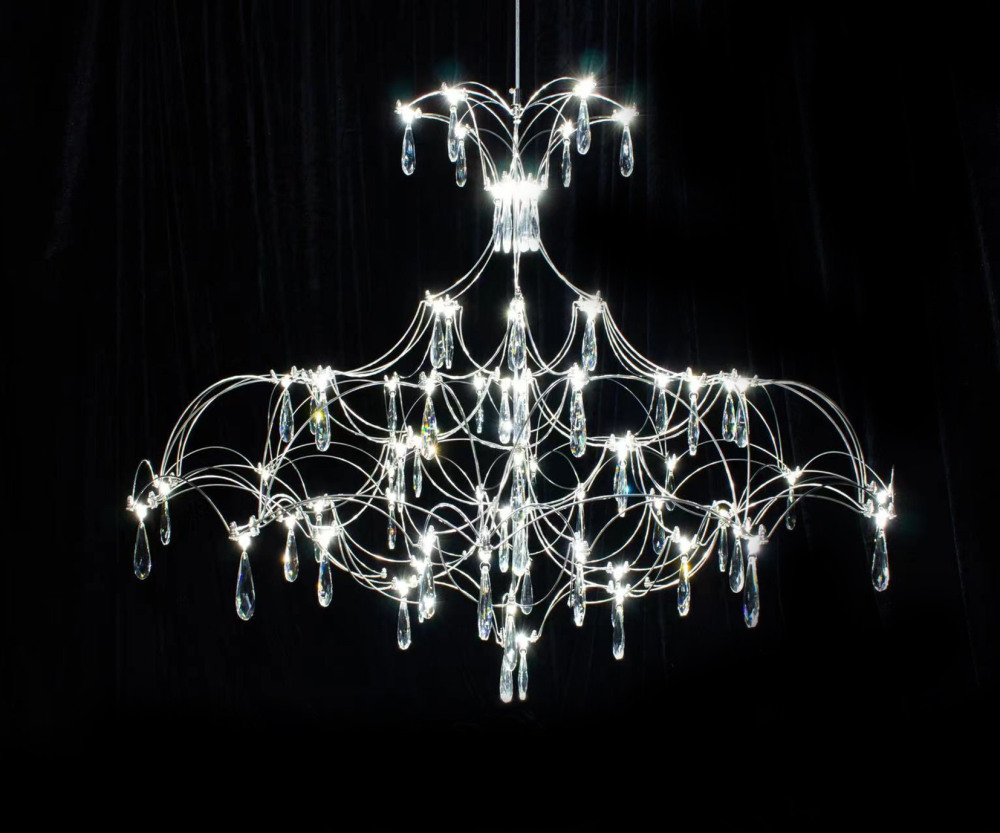 Размеры светильника: ширина 1200 мм, высота 1950 мм. Эти размеры позволяют люстре стильно смотреться как в просторных, так и в небольших помещениях.