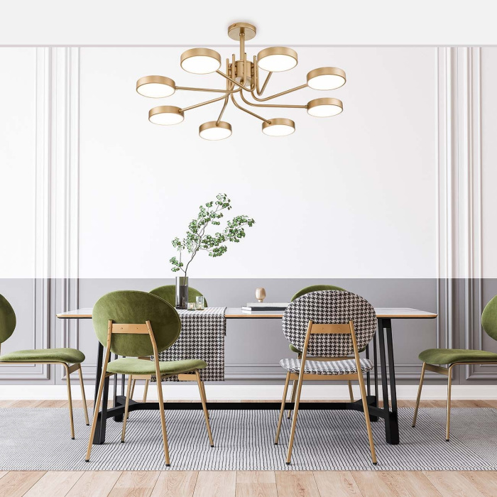 Эта модель светодиодной люстры для дома прекрасно сочетается с интерьерами, оформленными в стиле модерн. Благодаря своему универсальному дизайну, она также замечательно дополнит и в других стилях, придавая вашей комнате изюминку.