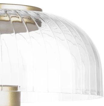 Каркас данной модели исполнен из надёжного металла, а его золото цвет придаст вашему интерьеру гармоничности и теплоты. Плафон выполнен в прозрачном цвете, что придает модели легкости и гармоничности.
